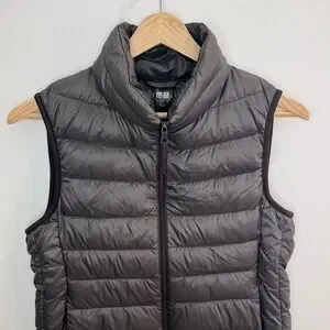 Uniqlo Women's Dark Choloclate Brown Quilted Puffer Down Vest Size Small Zip Up