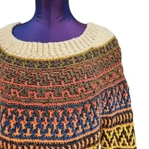 Handmade Crochet Mosaic Sweater Multi Color Geometric Boho Chunky Knit Pullover