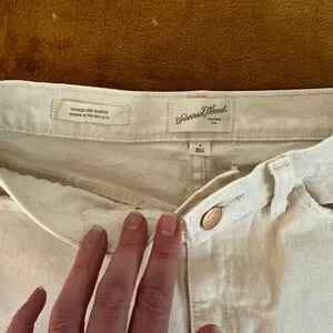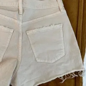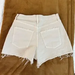 Universal Thread high rise distressed cutoff shortie denim shorts in cream ivory white.