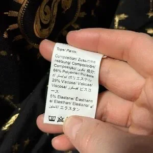 Fabric blend: 66% Polyester / 29% Viscose / 5% Elastane