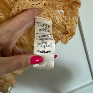Anthropologie Lace-Trim Button Front Blouse in Mustard and Black
