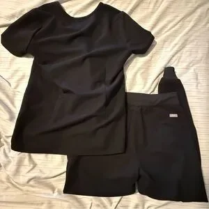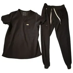 Figs Scrub Set Catarina Top and Zamora Joggers Pants Black Women's size XS