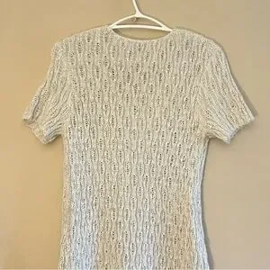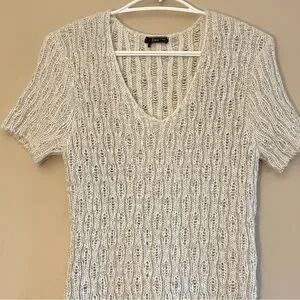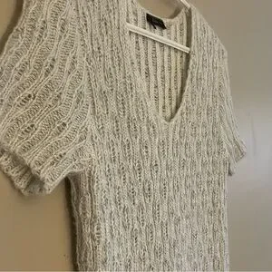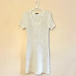Dex oatmeal knit sweater dress featuring a flattering V-neck and short cap sleeves. Soft, cozy, and easy to style for casual or dressed-up looks. Excellent used condition.