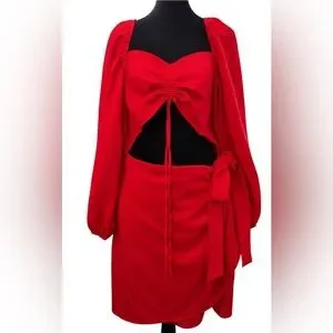 Pretty Little Thing Red Ruched Cut Out Bodycon Dress Plus Size 22 NWOT