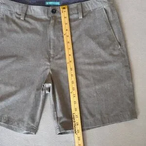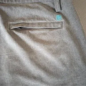 Tori Richard hybrid Surf N Turf gray shorts. Lightweight fabric for warm-weather wear, mesh pockets and zippered back pockets. Shorts made for water, boating or sitting by the pool, made with a quick drying fabric. Features belt loops and side pockets. Clean, classic styling for casual or resort outfits.