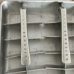 Frigidaire vintage Quickkube double ice cube tray. Durable design for easy cube release. Fits standard freezer use and offers organized cube storage. Wt 1.8 #.
