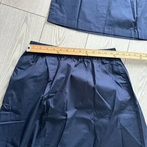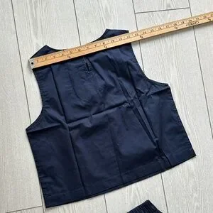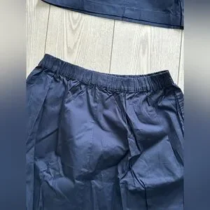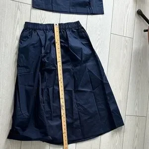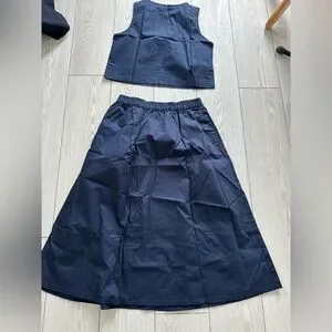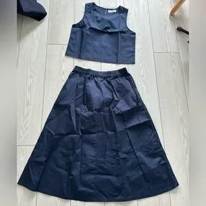 Navy two-piece set with a full skirt and matching crop top. Elastic waistband for comfort. Clean, simple silhouette perfect for styling. brand new.