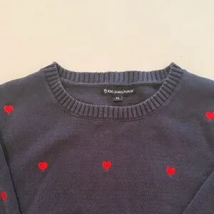 EUC - Kiel James Patrick Navy Sweater with Red Heart Accents