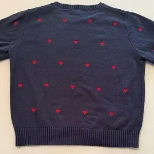 EUC Charming navy sweater adorned with red embroidered heart details.