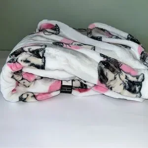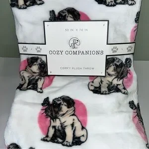 Pug Dog & Butterfly Oversize 50โx 70โ Plush Throw Blanket NEW NWT