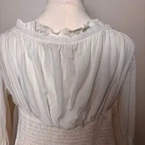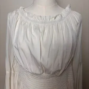 Belle Pogue White Smocked Waist Peasant Blouse Bell Sleeve Festival Top Sz 2XL