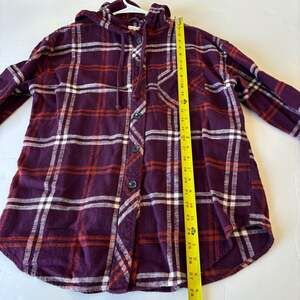 Maurices Purple Plaid Hooded Flannel Shirt Size Medium