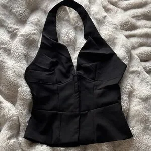 Oh Polly Black Halter Peplum Camisole