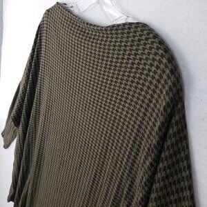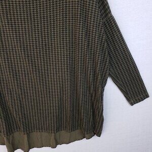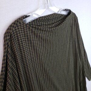 Bryn Walker Tunic Top Boxy Houndstooth Print Moss Green Oversized Lagenlook sz S