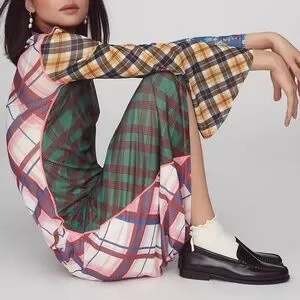Celia B Anthropologie Multicolor Plaid Sheer Midi Dress