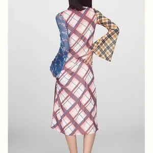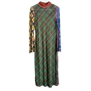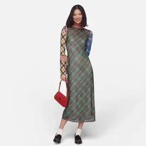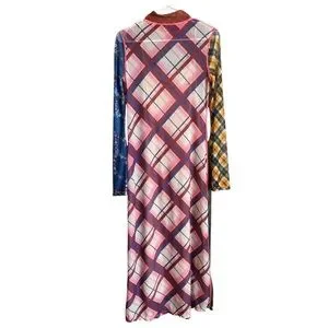 Celia B from Anthropologie multi colored plaid sheer mesh long sleeve dress with nude lining.