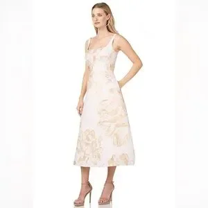 Kay Unger Floral Jacquard Tea Length Fit & Flare Dress Elegant Occasion Size 14