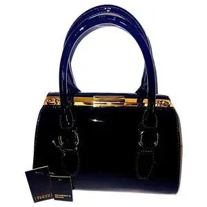 GRAMERCY & GRAND BLACK AND GOLD VEGAN LEATHER SATCHEL HANDBAG PURSE - NWT