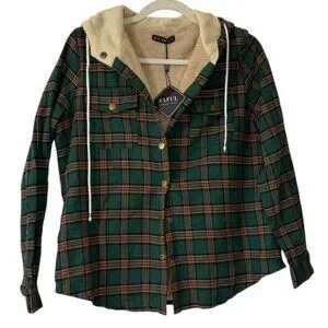 Zaful Green plaid hooded flannel jacket with snap buttons. NWT Size Medium. #flannel #autumnvibes #plaid
