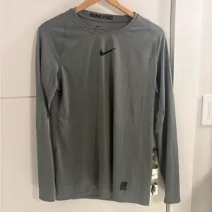 Nike Long-Sleeve Dri-FIT Training Shirt - Gray with Black Swoosh