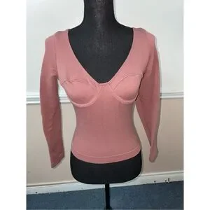 Victoria’s Secret Blush Colored Long Sleeve Skin Tight Body Suit Top