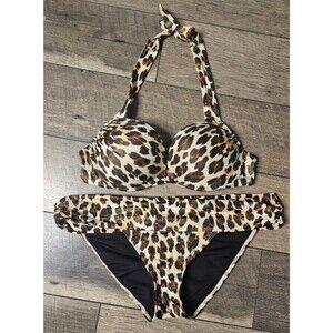 Victoria Secret Miraculous Bombshell Leopard Bathing Suit Swimsuit 36B Large