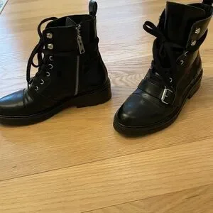 Durable sole for everyday wear. Sleek black finish pairs easily with casual and edgy outfits. Comfortable fit with secure lacing and ankle support.