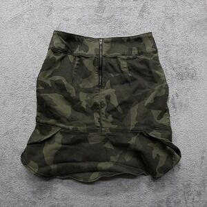 White House Black Market Skirt Womens 0 Green Camo Ruffle Hem Stretch Zip Back
