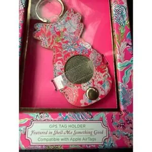 Lilly Pulitzer Shell Me Something Good Pineapple Apple AirTag GPS Tag Holder NEW