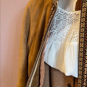 Talbots Tan Suede Embroidered Trim Long Coat