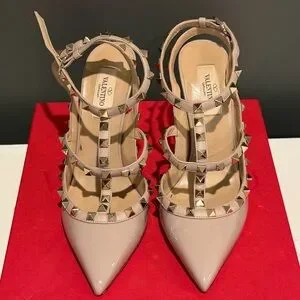 Valentino Nude Patent Rockstud Strappy Pointed Pumps