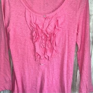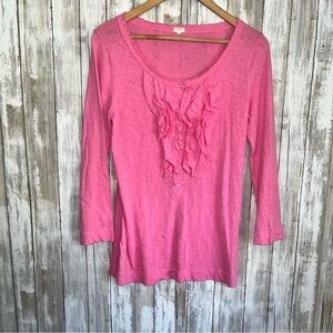 J. Crew Pink Ruffle Front Blouse