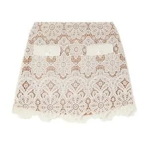 Self-Portrait Crystal-Embellished Ivory Guipure Lace Mini Skirt Size UK 8 / US 4
