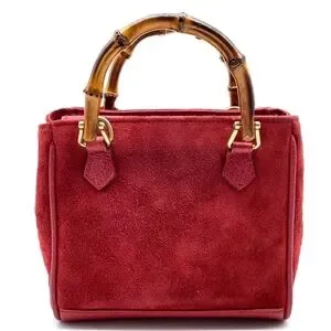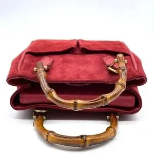 SALE! Gucci Red Suede Mini Satchel Handbag/Shoulder Bag W Bamboo Handles & Strap