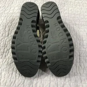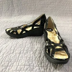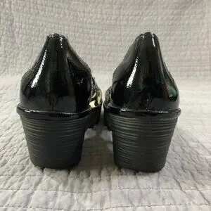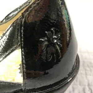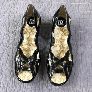 Fly London Wedge Size 41 EU 10 US Yadi Interwoven Straps Peep Toe Black Patent