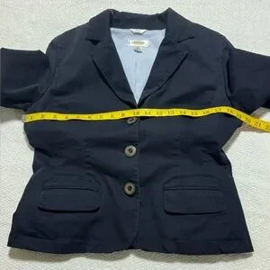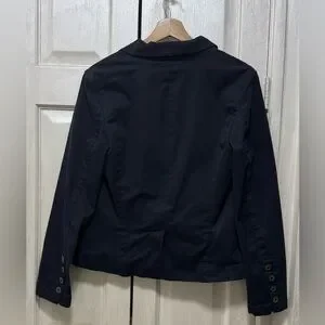 Talbots Stretch Size 10 Navy Blue Cotton Short Blazer