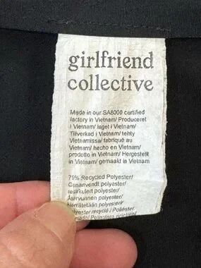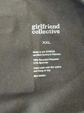 Girlfriend Collective branded leggings. Made from recycled polyester blend with spandex. High-rise, supportive fit for workouts or daily wear. Breathable and stretchy fabric.