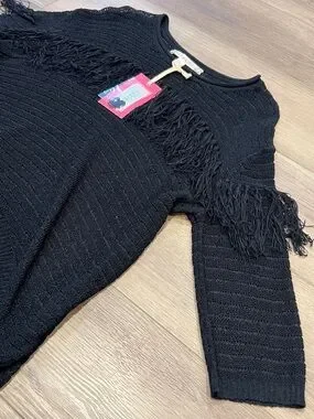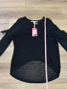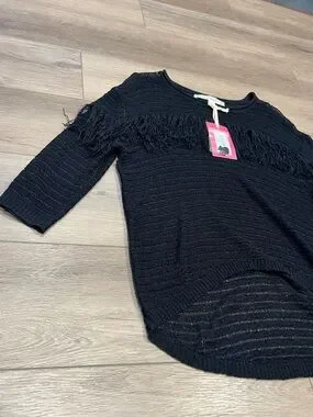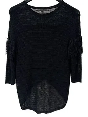 NWT Chelsea & Violet Black Fringe See-Through Knit Top Hi-Low Relaxed Fit