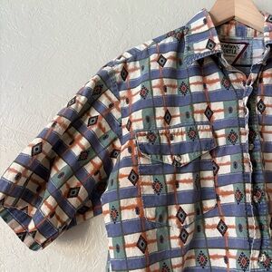 southwestern shirt western shirt cowboys turtle association vintage western geometric print ranchwear americana short sleeve button up festival western mens medium