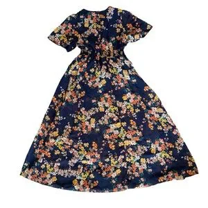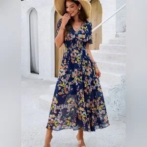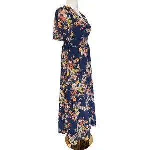 NWOT Floral Navy Maxi Dress with Smocked Waist Medium