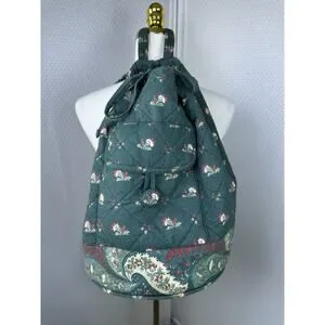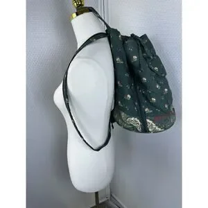PIERRE DEUX French Country Green Floral Quilted Back Pack Sling Bag Vintage