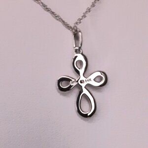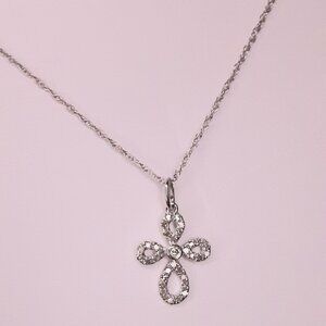 NEW 14kt White Gold and Diamond Cross Necklace