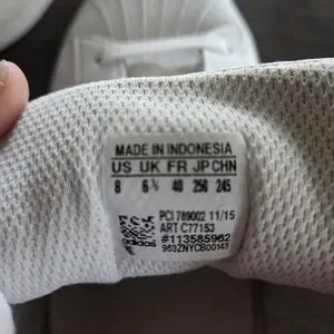 Sleek adidas sneakers with iconic black stripes. White leather design. Perfect for everyday wear.