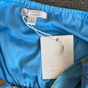 NWT LC Lauren Conrad Light Blue Floral Dress with Red & Yellow Accents