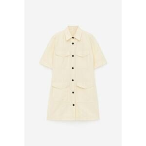 Arket Shirt Dress Linen Cotton Butter Yellow Sz M Utility Minimalist Scandi