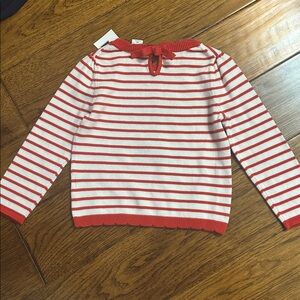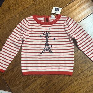 Adorable sweater with red and white stripes. Features Eiffel Tower design. Ideal for stylish kids.