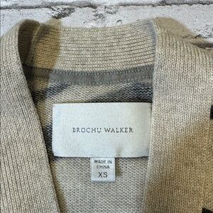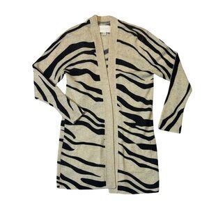 Brochu Walker womens XS tan black zebra print 100% cashmere cardigan sweater