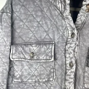 Jane and Delancey Quilted Shirt Jacket Mineral Wash Diamond quilt Gray Sz XL