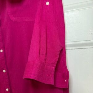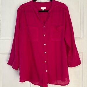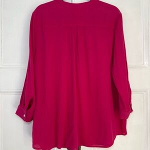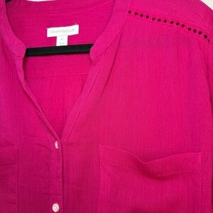 Charter Club Fuchsia Pink Roll-Tab Button Down Blouse - XL