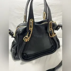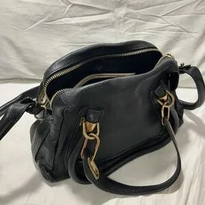 Chloe Paraty Black Satchel Bag with Gold Hardware
